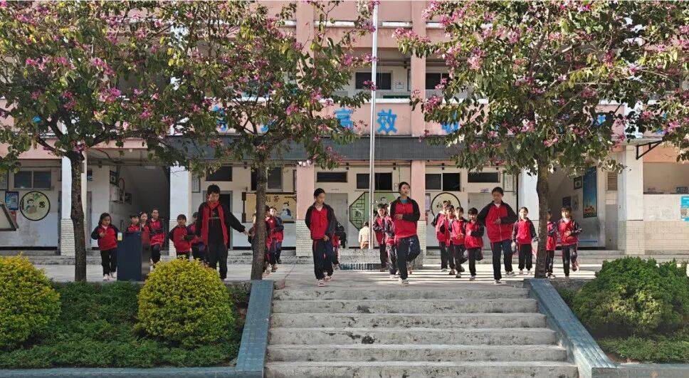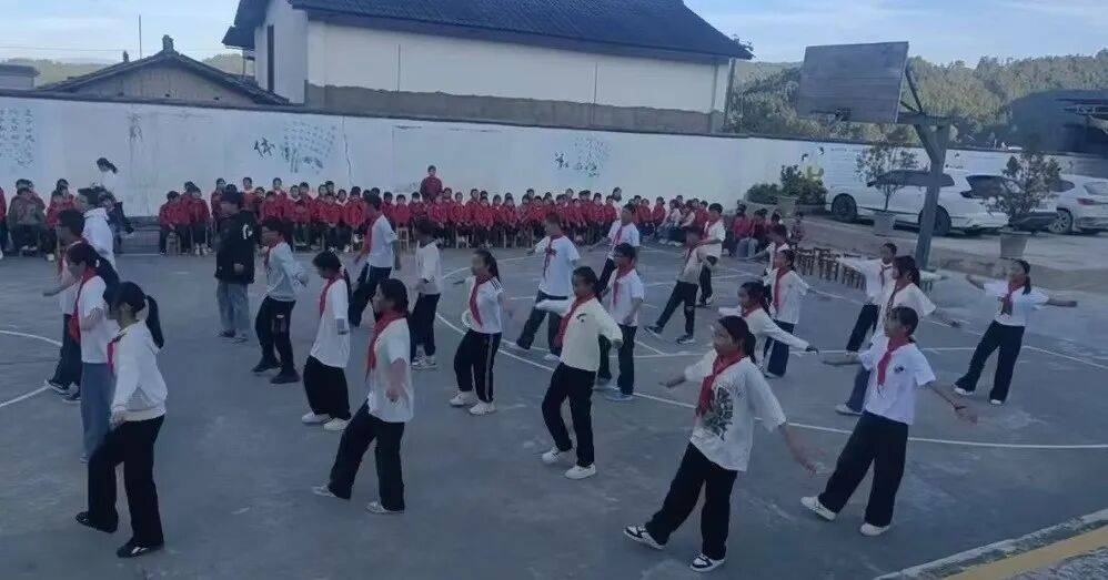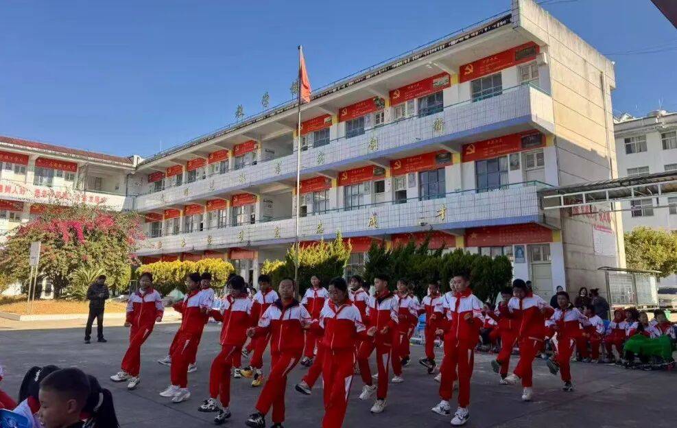 操场上,学生踏着民族节拍舞动,傈僳族舞步铿锵、傣族舞姿轻盈、彝族打跳点燃全场,师生共舞间升华民族团结氛围。这不仅是体育锻炼,更是沉浸式文化体验与无声的家国情怀、民族认同教育。