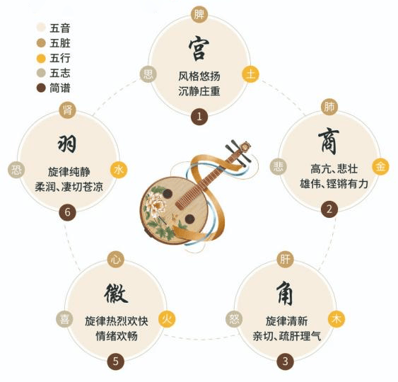 早在两千多年前,《黄帝内经》就提出“天有五音,人有五脏;天有六律,人有六腑”的理论,确立了五音与五脏的对应关系。其中,古琴的五音体系尤为典型:宫音如大地般厚重,入脾经,能缓解焦虑、促进消化;商音似金石清越,入肺经,可减轻悲伤情绪、增强免疫力;角音若春风拂柳,入肝经,能疏解郁结、平息怒气;徵音如火焰跃动,入心经,可振奋精神、改善失眠;羽音似流水潺潺,入肾经,能宁神静心、缓解腰膝酸软。